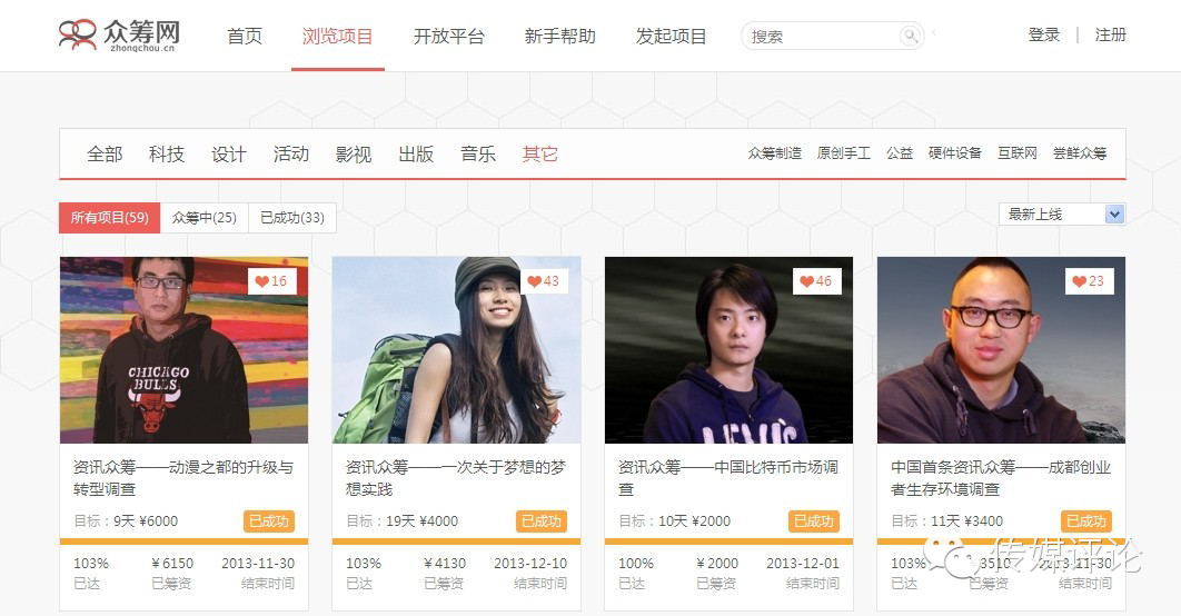 其次,从资助者角度而言。在“新闻众筹”的运作过程中,项目发起人极有可能会照顾到资助人的倾向与认可,因为只有这样才能把报道计划推销出去,让受众为之慷慨解囊。像众筹网,截至2013年12月20日,各类众筹项目有226个,成功只有50个。众筹新闻的资助者在某种程度上成了新闻生产过程中的把关人,他们来决定哪些报道计划应该去做而哪些没有必要去做。所以,众筹新闻有可能变成迎合资助者的新闻生产方式,而背离了客观、公正的基本要求。