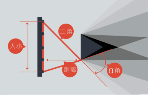 从上图可以看出,α角的大小既是三角形的一个角(图中粗线画出),学过几何的人都知道,决定α角的是两个因素:高和底边。从图中可以看出,这个三角形的底边大小就是光源面积的大小,高就是光源与物体的距离: