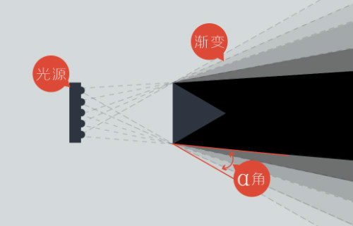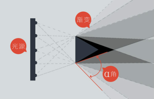 可以明白,这个阴影到亮部的层次就是一个渐变,它将覆盖整个α角。