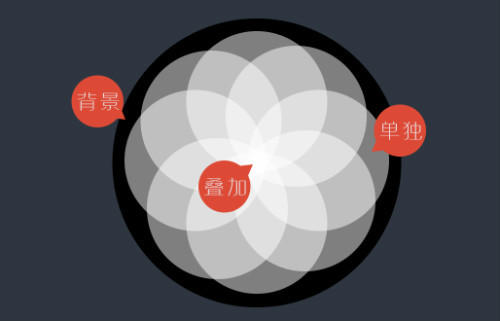 图中圆形背景为纯黑,每一个圆都是一个点光源的作用区域,而相交部分会更亮,用来模拟光源互相叠加的情况。