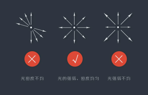 ②点光源向所有方向均匀发射,密度均匀,布满整个空间,不存在有地方有,有地方没有的情况。